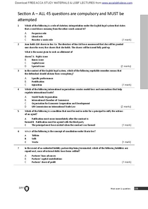 LOC - Online PDF acca-f4-question-model-2014-december Library Binding BookBoon